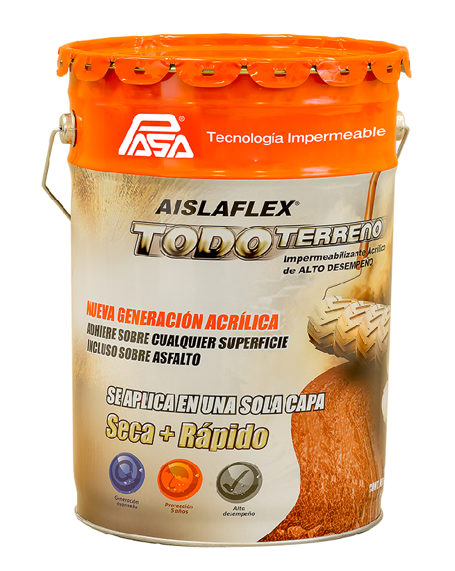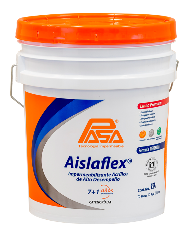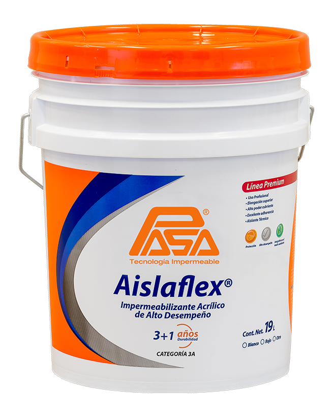Impermeabilizantes acrílico base agua de alta viscosidad. AISLAFLEX 5+1 en color blanco es altamente reflectivo, por su índice de reflectancia solar de 104, es un aislante térmico muy eficiente.
